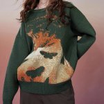 The standout feature of this sweater is its unique cartoon pattern, which adds a fun and whimsical element to your outfit. Whether you’re dressing up for a day at the office or keeping it casual for a weekend outing, this sweater is sure to turn heads and spark compliments. Pair it with your favorite jeans and boots for a laid-back look, or dress it up with a skirt and heels for a more polished ensemble.