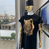 A charcoal black ?daftan? with a tiger prints & black Fulani hat