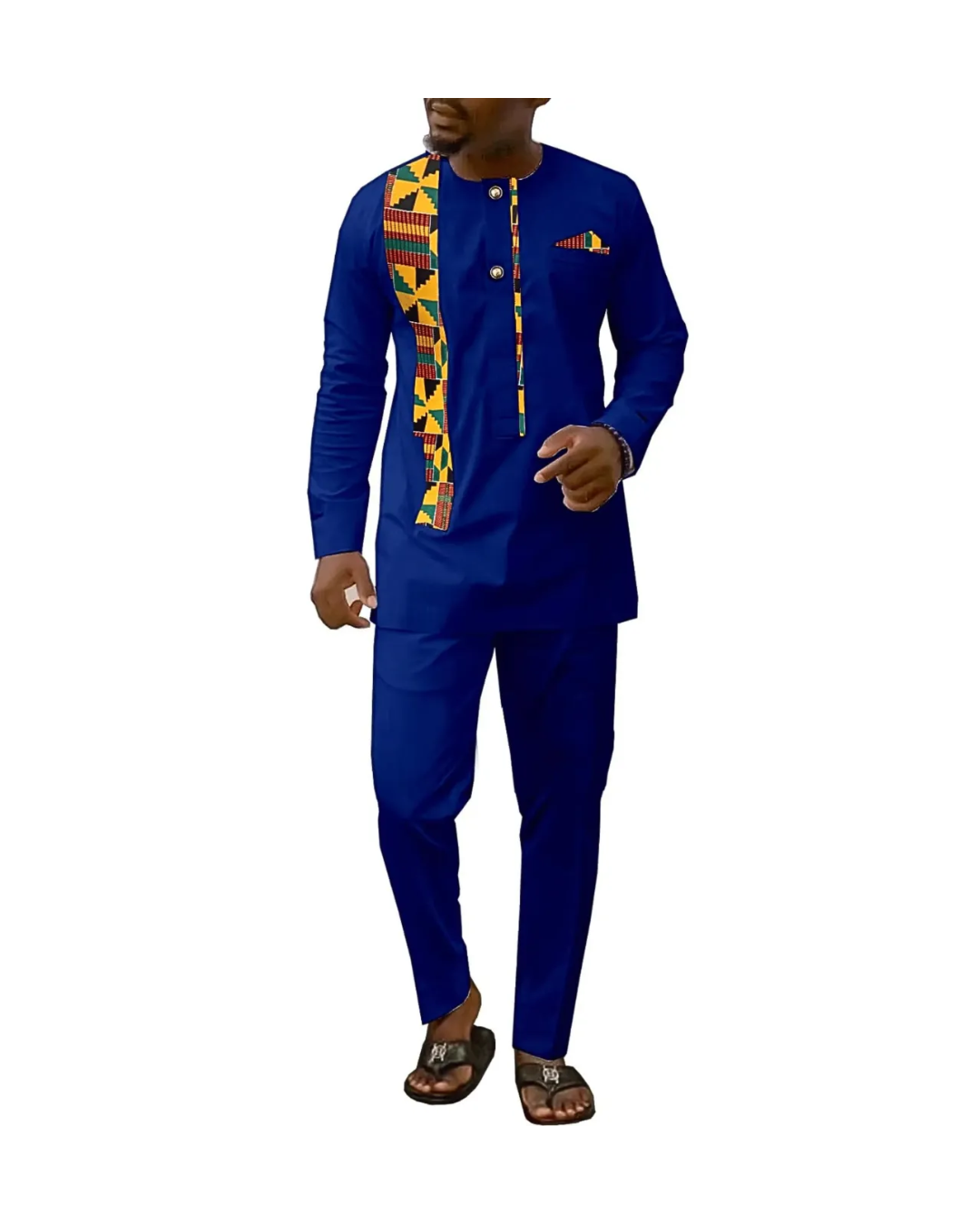 - CLASSIC STYLE & SLIM FIT — Men’s African Traditional Dashiki Button Up Shirt /African Fashion Wax Cotton Pattern Printed Patchwork Design /Neckband /Long Sleeve