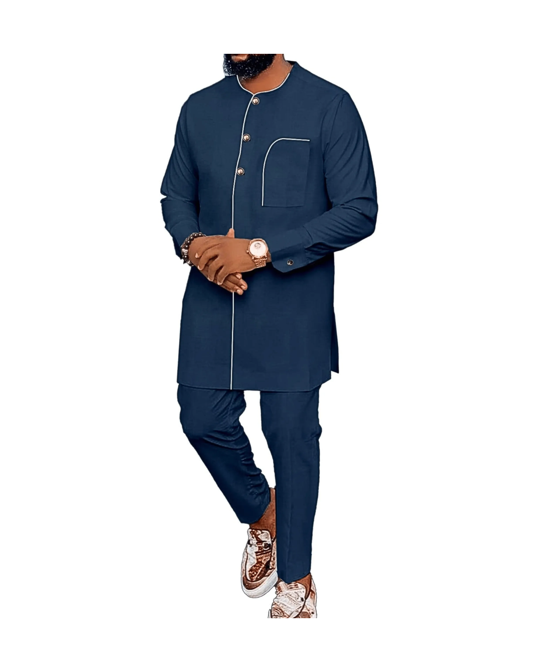 • CASUAL & SIMPLE STYLE — Fashion design dashiki suit for men, 2 piece set of african outfit, African men’s suit, formal and designed, long sleeve dashiki shirt and pants with Elastic waistband.
