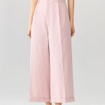 High Waist Wide-Leg Cuffed Trousers for Women $71.49