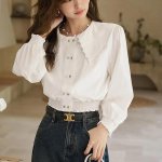 Embrace Elegance with Our Korean Doll Neck Lace Patchwork Top