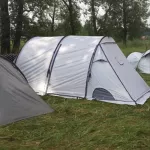 Can’t rave enough about this tent. Haven’t tested it in the rain yet, but it’s easy to set up, feels sturdy, and is super spacious and comfy. You can leave off the rain fly on clear summer nights for a great view of the sky and fresh air. Fits 3 queen air mattresses easily. At 6’1″, I can almost stand up straight, which is great for changing clothes.