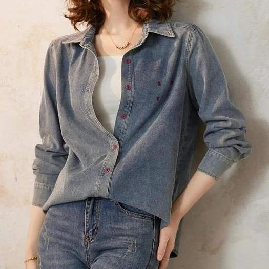 Step into spring with confidence and style with our new turn-down collar denim shirt. This casual, loose-fit blouse is designed to offer both comfort and fashion, making it a versatile addition to your wardrobe. Perfect for middle-aged women looking for a chic yet laid-back look, this shirt is ideal for everyday wear, whether you’re running errands or meeting friends for coffee.