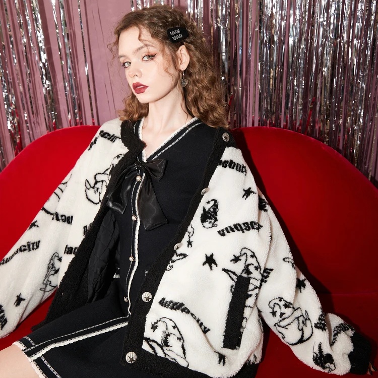 This coat is ideal for autumn and winter, providing the warmth you need without compromising on style. The playful cartoon pattern sets it apart from standard outerwear, giving you a unique and fun look. It’s perfect for casual outings and can be easily paired with jeans, skirts, or dresses. The practical pockets add functionality, making it convenient to carry your phone, keys, or other small essentials.